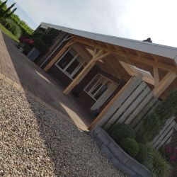 Wir bieten verschiedene Arten von Vordächern an, von Flachdächern mit oder ohne Überhang, mit EPDM-Folie als Dacheindeckung. Wir empfehlen, 3 cm Dämmplatten auf das Dach zu legen, um das Eindringen von Feuchtigkeit in das Holz zu verhindern. Diese Flachdächer können mit einem Oberlicht, entweder in Pultdach- oder Satteldachbauweise, weiter aufgewertet werden.